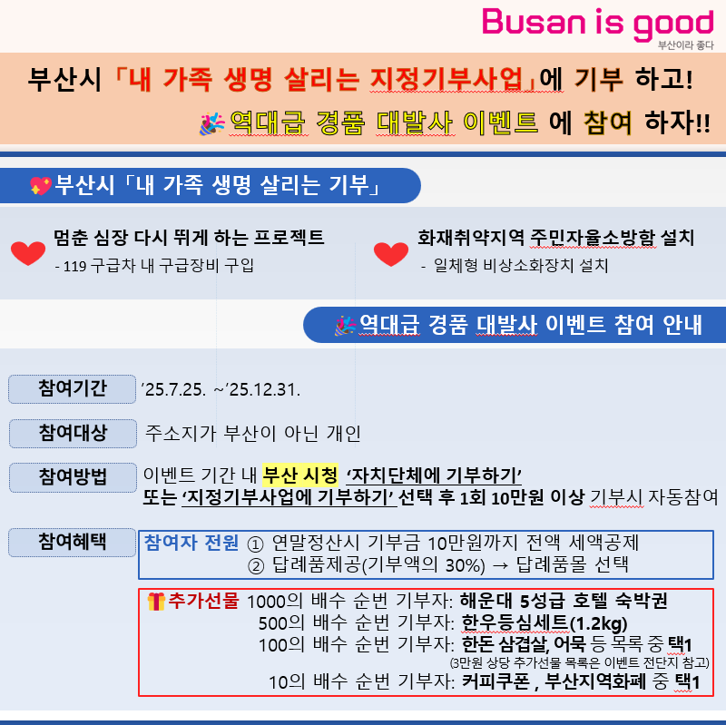 <역대급 경품 대발사 시즌2 부산 고향사랑기부 빅 이벤트 전단지>