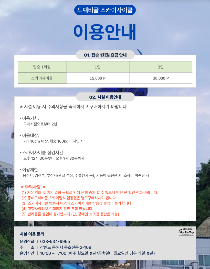허공을 달리는 새로운 공중체험, 자연과 내가 하나가 되는 놀이기구! 고공에서 사이클을 타고 허공으로 주행하여 환승타워에서 다시 돌아오는 스릴체험