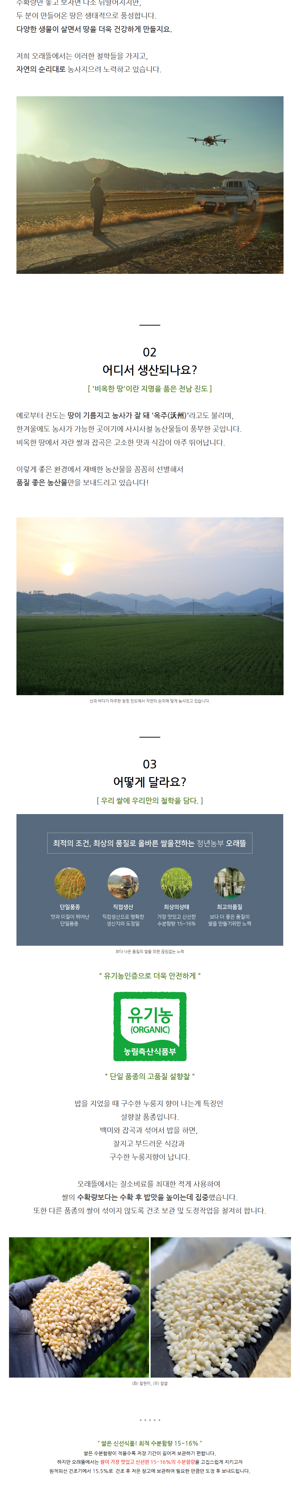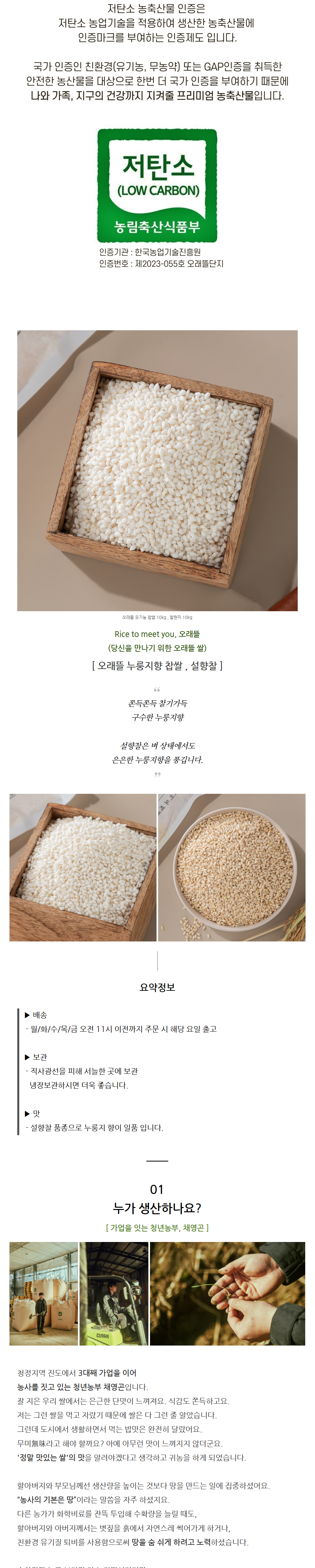 쫀득쫀득 찰기가득한 구수한 누룽지향이 나는 유기농 찹쌀입니다. 설향찰은 벼 상태에서도 은은한 누룽지향을 풍깁니다.