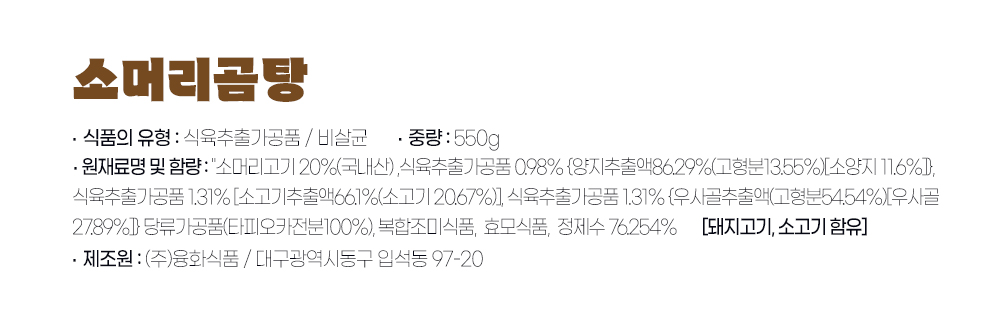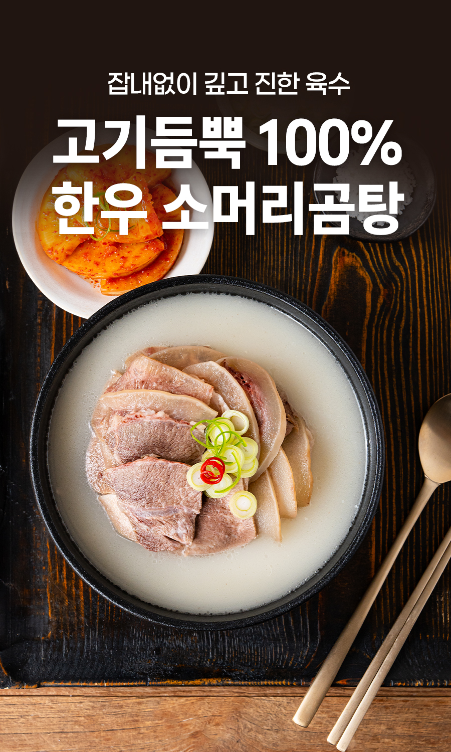 100% 국내산 한우 소머리로 만든 소머리곰탕입니다. 네이버에서 1팩 9500원에 판매중입니다.
