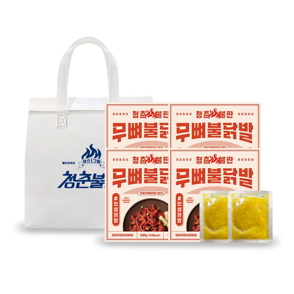 청춘불판 무뼈불닭발 200g 4팩 (마늘소스 2팩 증정) 뼈없는 매운 닭발 캠핑 간편조리