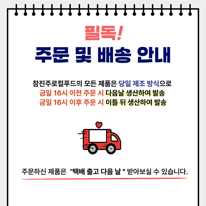 • 배송기간 : 2~7일 예상(식품의 경우 지연 발생 시 1주~2주 소요)
