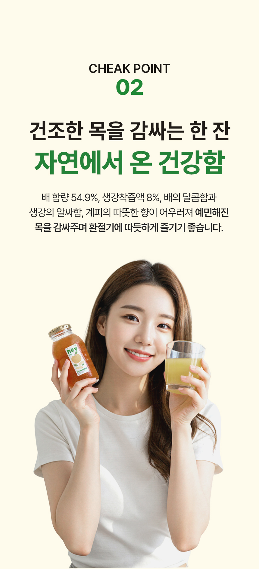 배 54.945%, 생강 8%, 꿀, 계피가루, 사탕수수