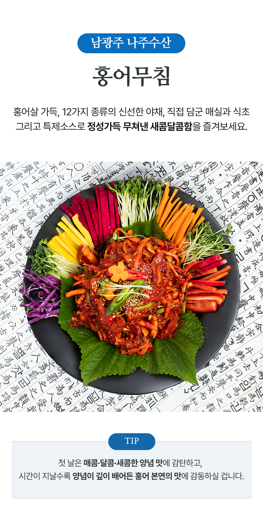 신선한 12가지 야채와 식재료들로 새콤달콤매콤하게 정성가득 무쳐 집앞까지 배송되는 홍어무침