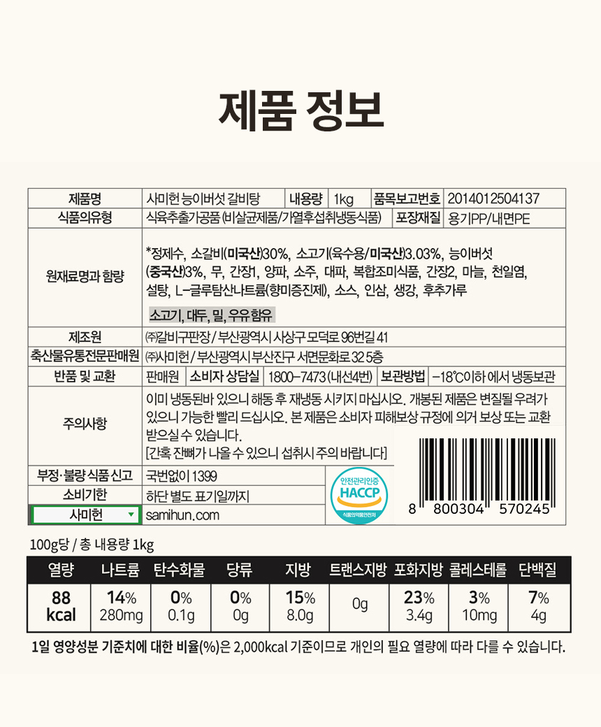 사미헌 갈비탕1팩(1kg), 능이버섯 갈비탕 1팩(1kg)