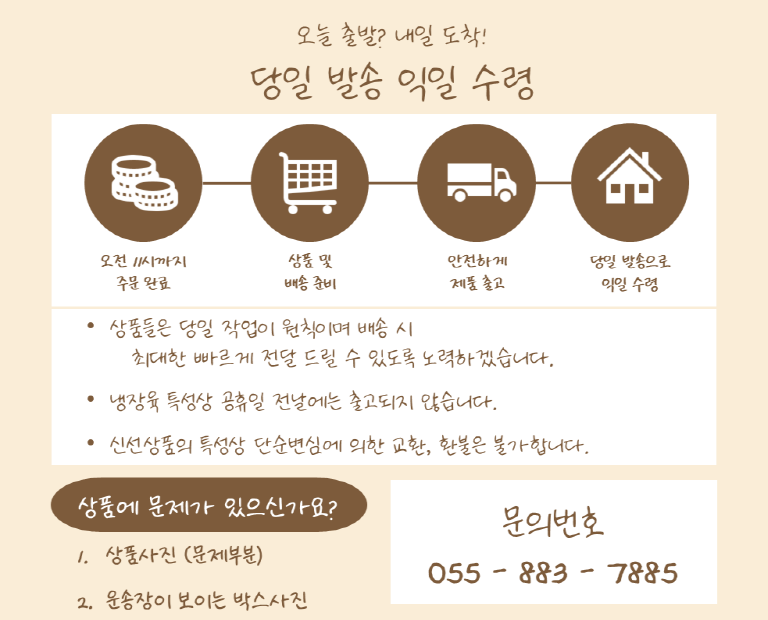• 수령 7일 이후 전화문의 또는 사이트 신청 없이 반품한 경우 고객님께 다시 반송됨을 양해바라며, 환불/교환은 불가합니다.