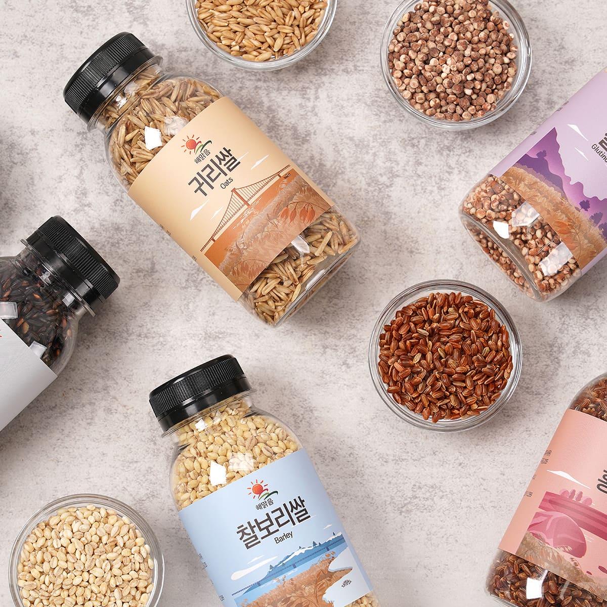원재료명/함량 귀리(국산)100%,찰보리(국산)100%,홍미(국산)100%흑미(국산)100%,기장(국산)100%