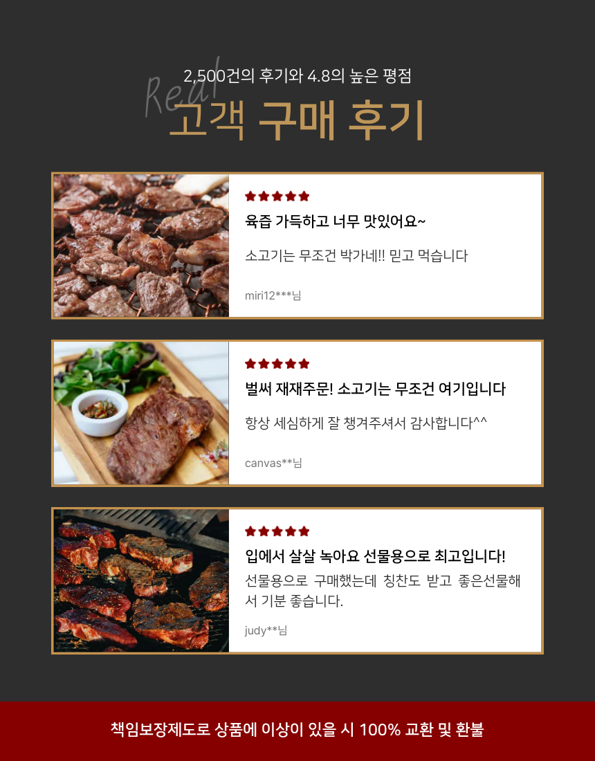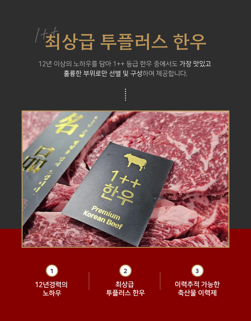 대한민국 국민이 사랑하는 1++등급 한우등심으로 이루어진 구이용 소고기입니다.