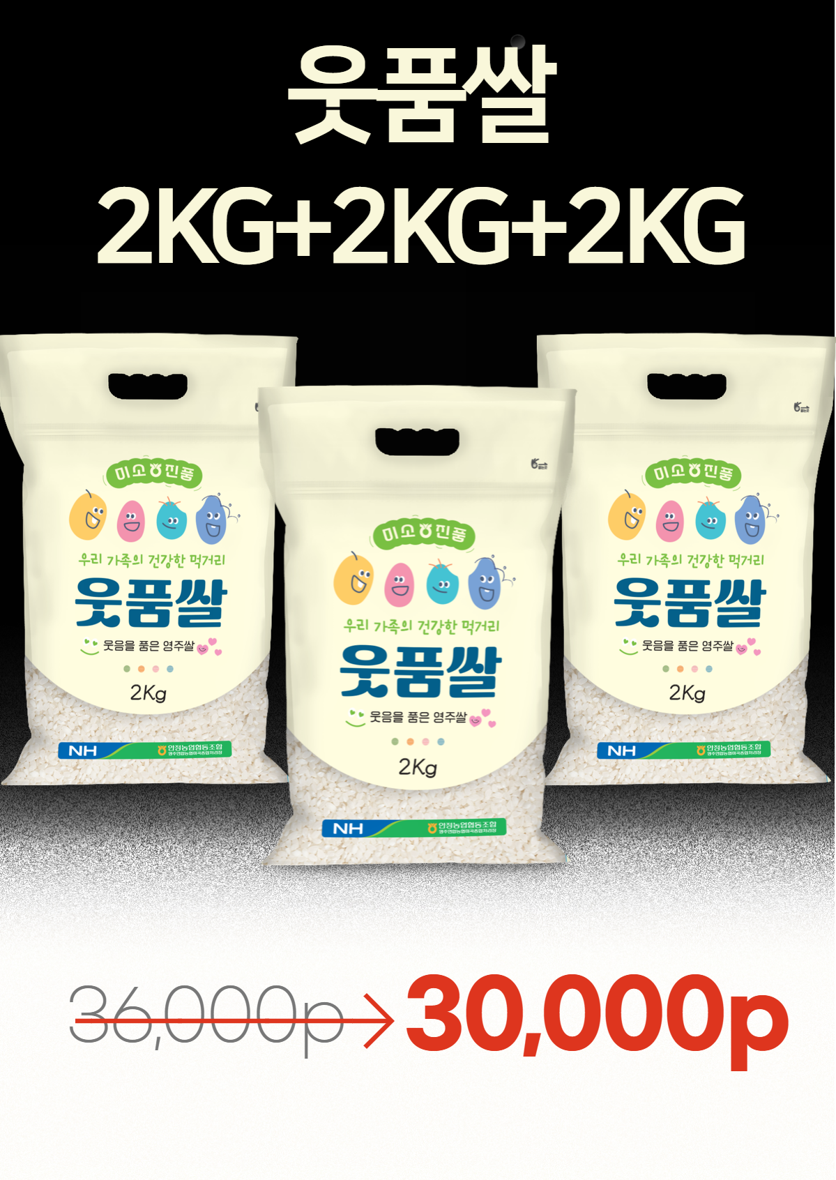 [경북 영주시] 웃품쌀 2KG + 웃품쌀 2KG + 웃품쌀 2KG(2025년산)