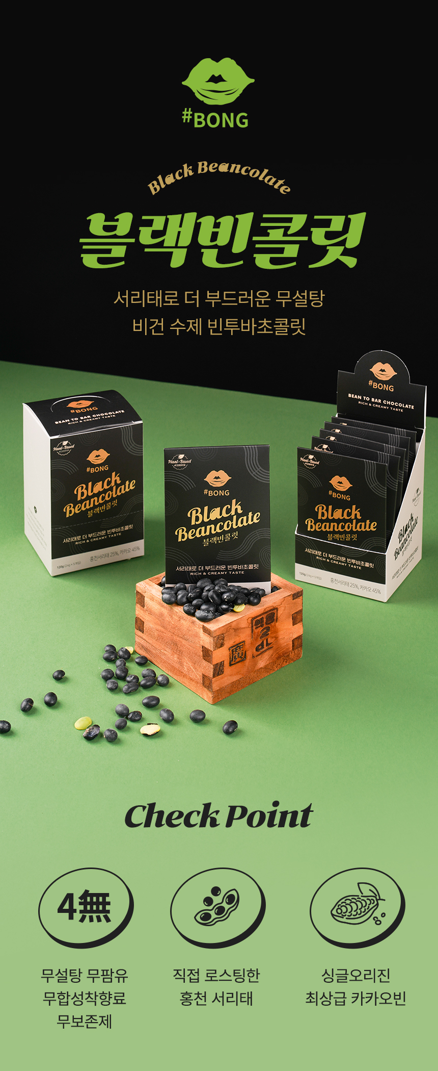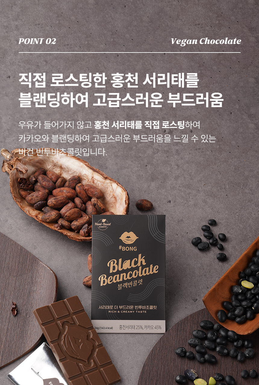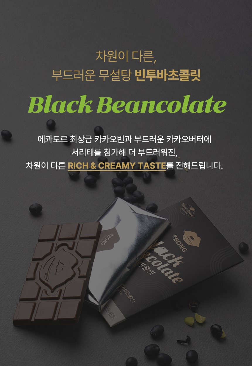 우유를 넣지않고 홍천 서리태를 직접 로스팅한 후 가공하여 최상급 카카오 빈과 블랜딩 한 무설탕, 무팜유, 무합성착향료, 무보존제의 프리미엄 서리태 밀크초콜릿 블랙빈콜릿 세트