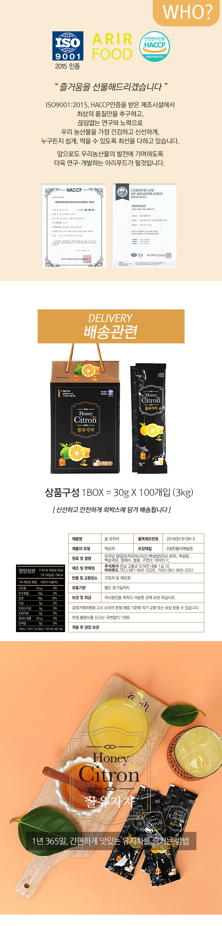 [전남 고흥군] 스틱형 꿀 유자차 100개*30g (3kg)