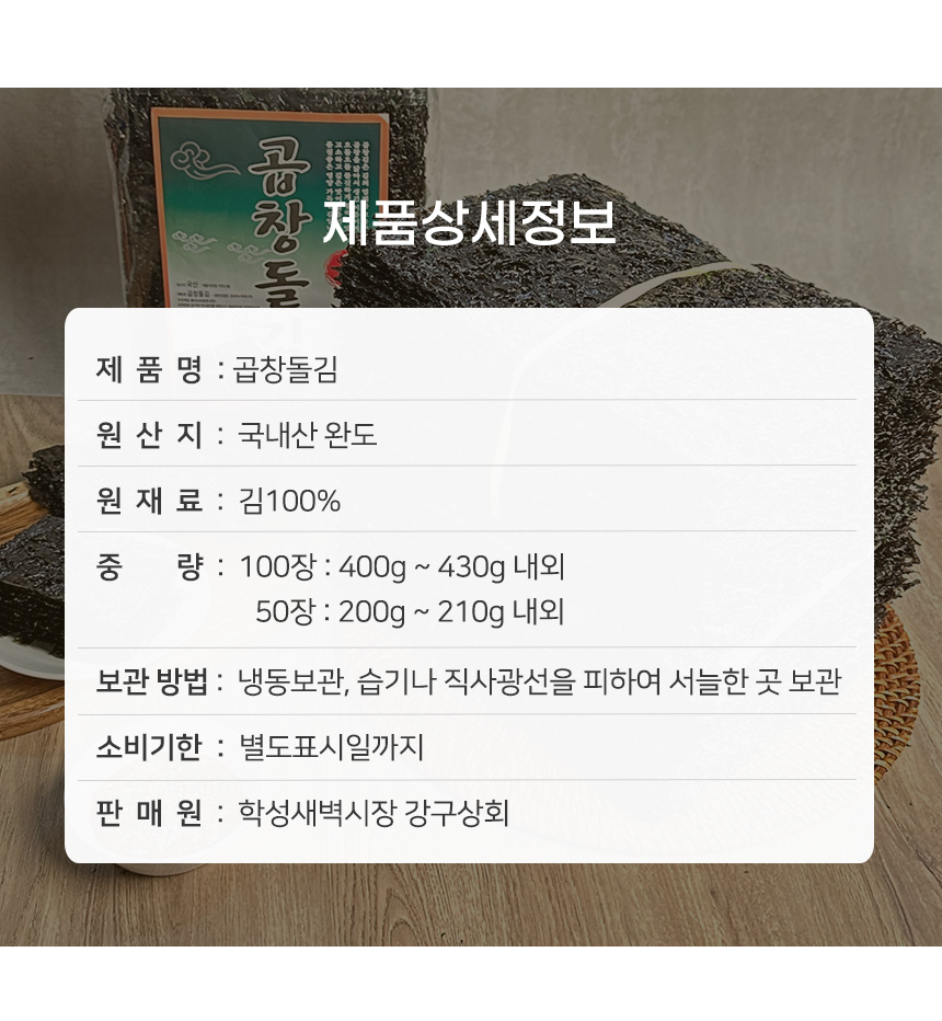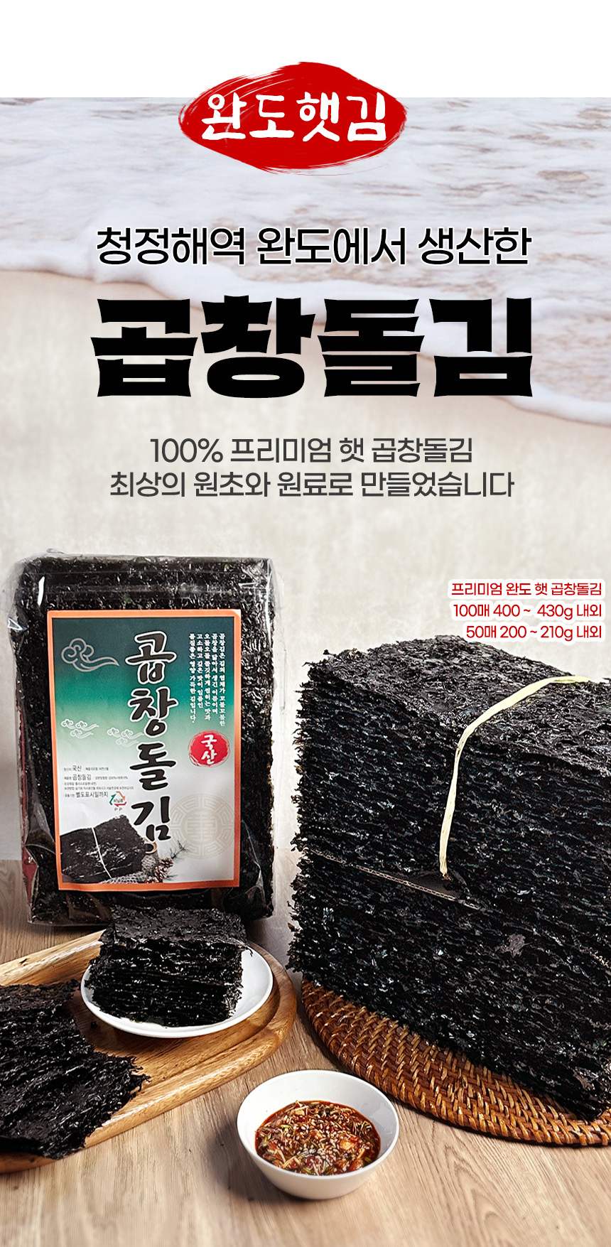 프리미엄 완도 햇 곱창돌김 100매