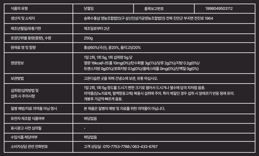 원산지 :홍삼(국산),꿀(국산),프락토올리고당(국산)