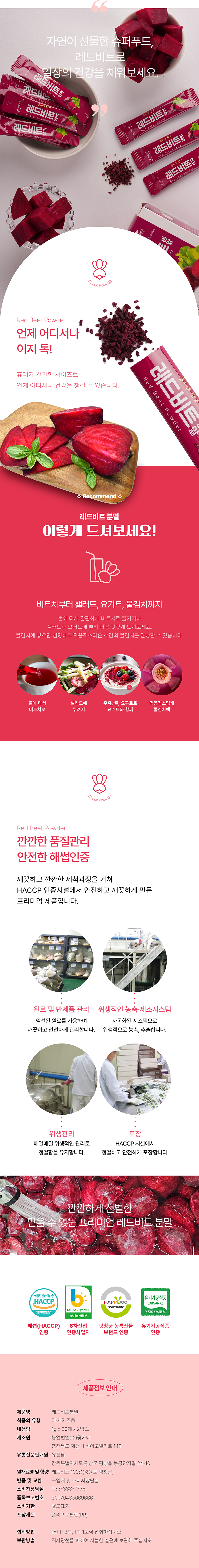 [강원 평창군] 레드비트분말(1g*30포*2박스) / 유진팜