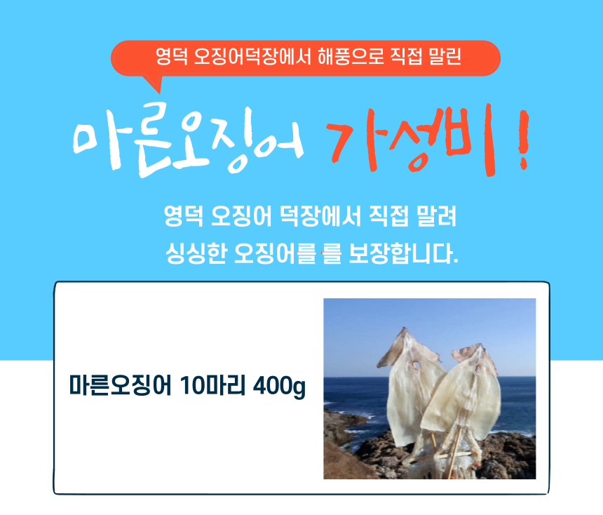 [가을바다] 부드러운 마른오징어 10마리 400g