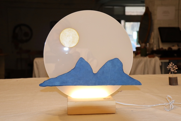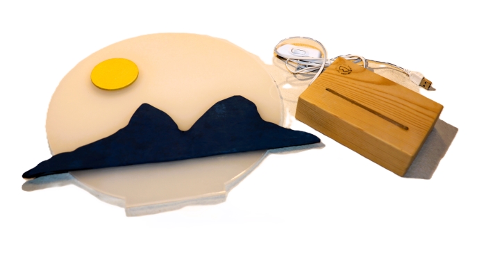 마이산의 달밤을 형상화한 무드등 원목 거치대와 아크릴 Led 등으로 구성