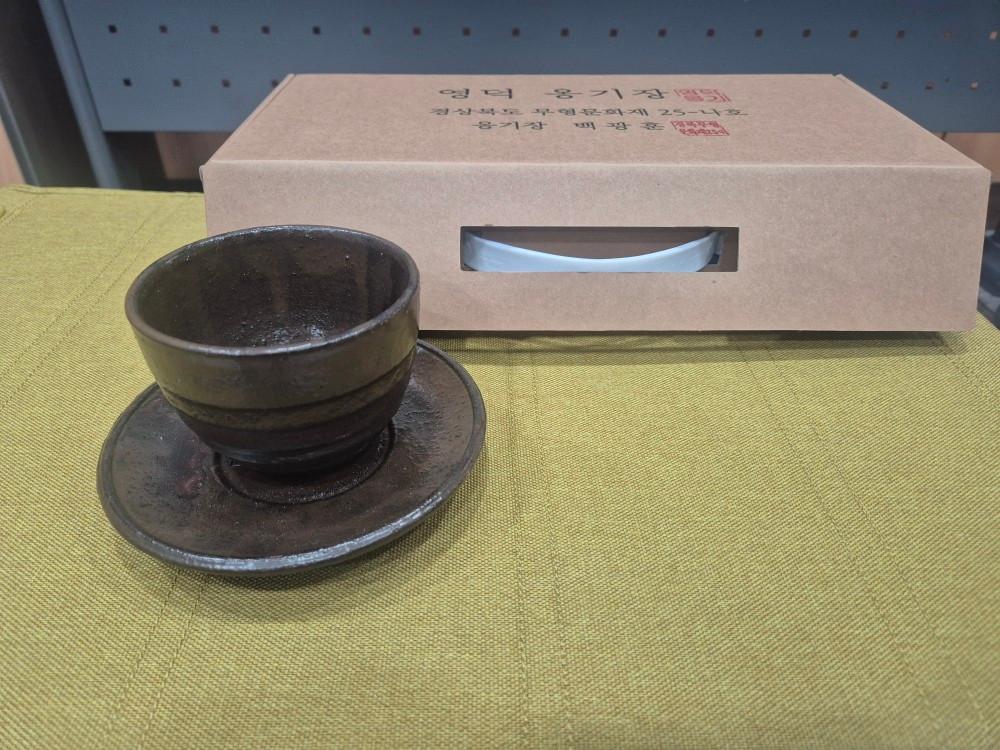 경상북도 무형문화제 25-나호 영덕옹기장 백광훈 전통옹기 찻잔+받침 2개 세트