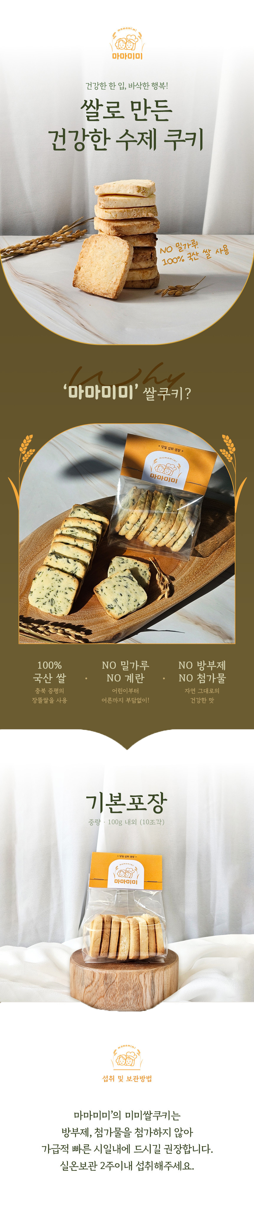 NO 밀가루! NO 계란! 마마미미 쌀쿠키는 우리쌀과 최고급 버터를 사용하여 만든 바삭하고 맛있는 수제쌀쿠키입니다.