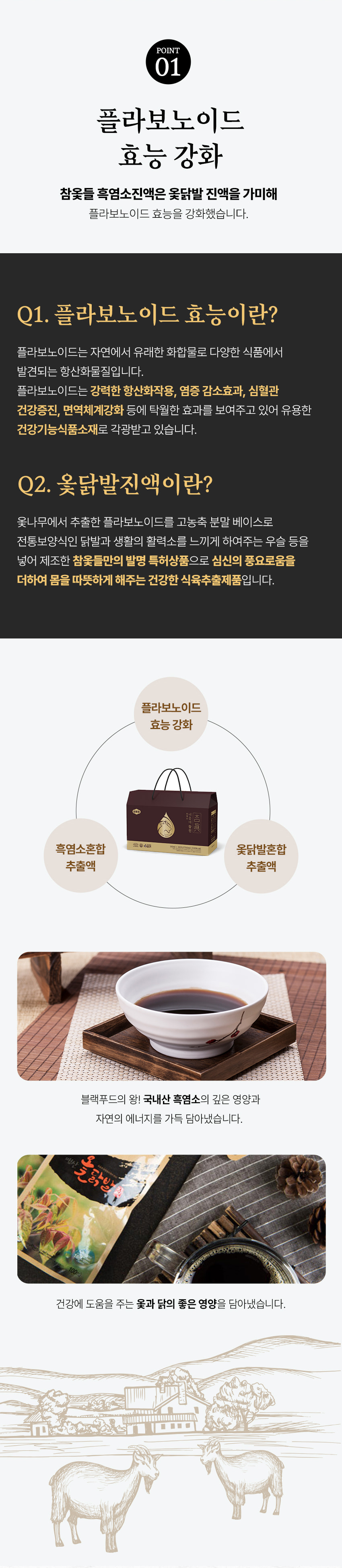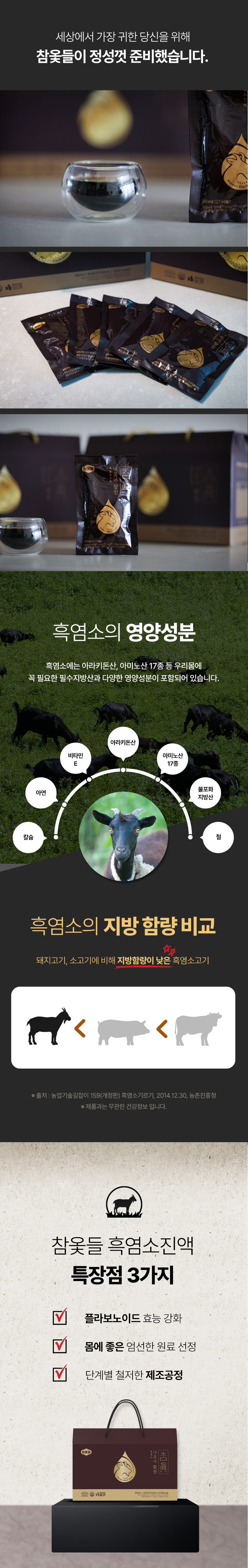 보양식의 대표주자 흑염소 추출물에 옻나무 플라보노이드 성분을 더해 선보이는 새로운 형태의 프리미엄 보양 진액
