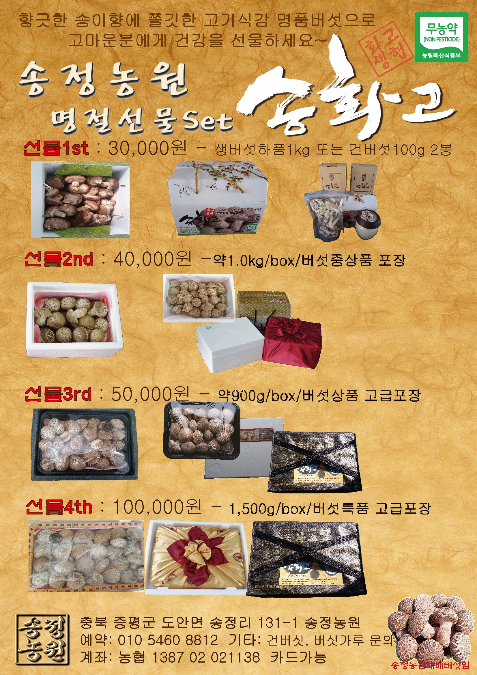 [충북 증평] 깨끗한 암반수로 키운 무농약 친환경 '송화고버섯' 세트