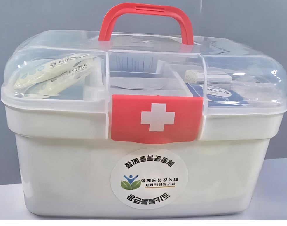 ⚬그 답례품으로 준비된 어르신 맞춤형 응급구급세트 *비상연락망 부착