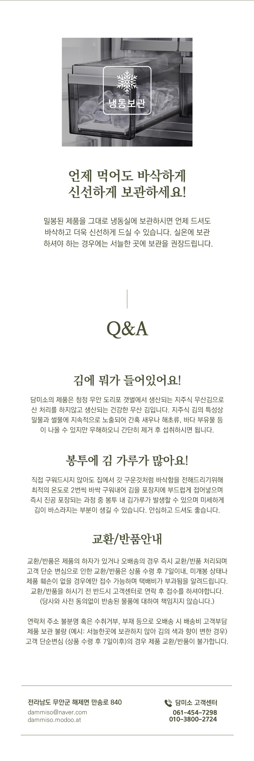 • 수령 7일 이후 전화문의 또는 사이트 신청 없이 반품한 경우 고객님께 다시 반송됨을 양해바라며, 환불/교환은 불가합니다.