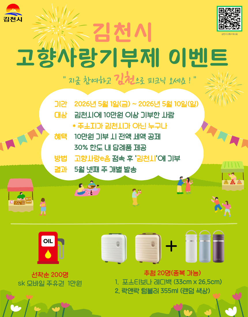 참여방법 : 고향사랑e음에서 김천시에 10만 원 이상 기부하면 자동 응모