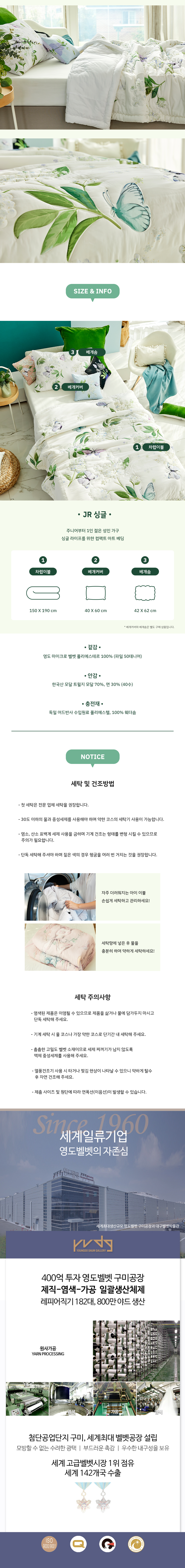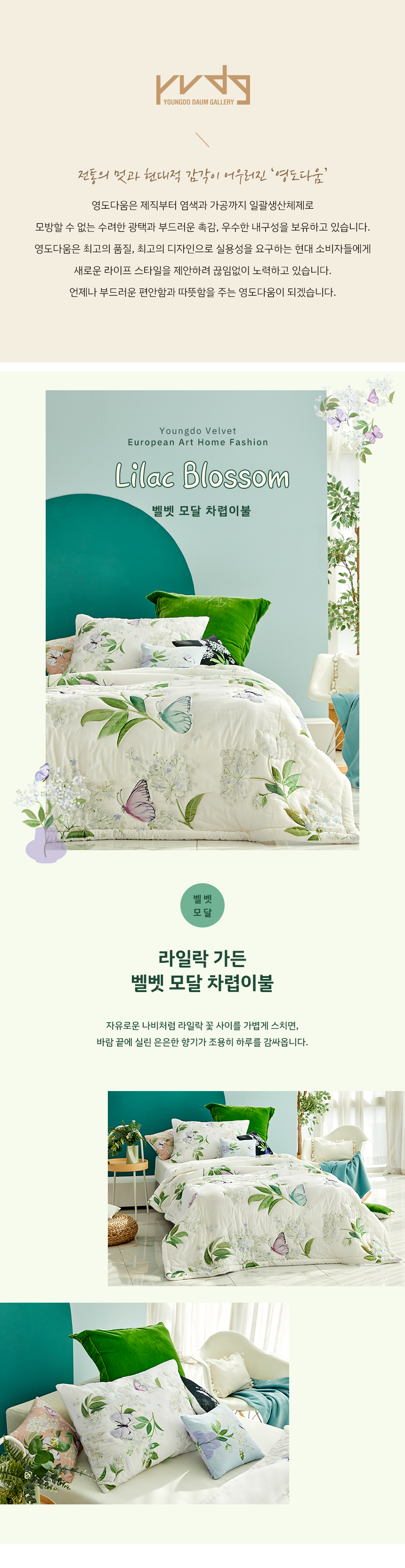 물세탁이 가능한 벨벳과 모달 소재를 적용한 라일락 플로럴 감성의 컴팩트 차렵이불 / 60년 벨벳 장인기업 영도벨벳의 기술로 제작