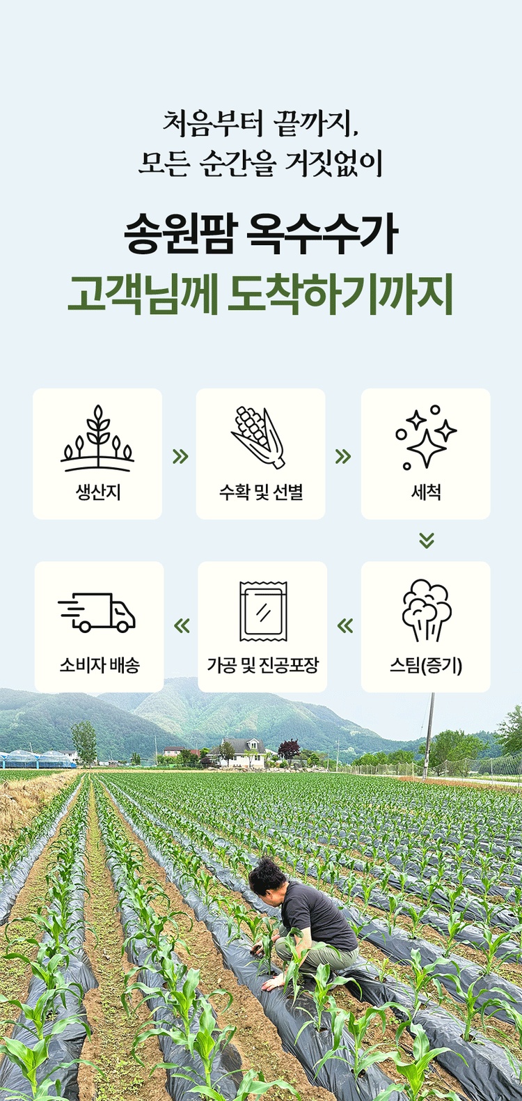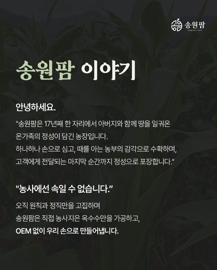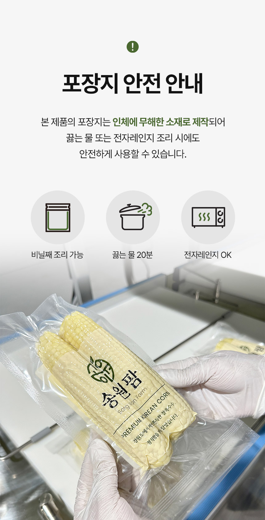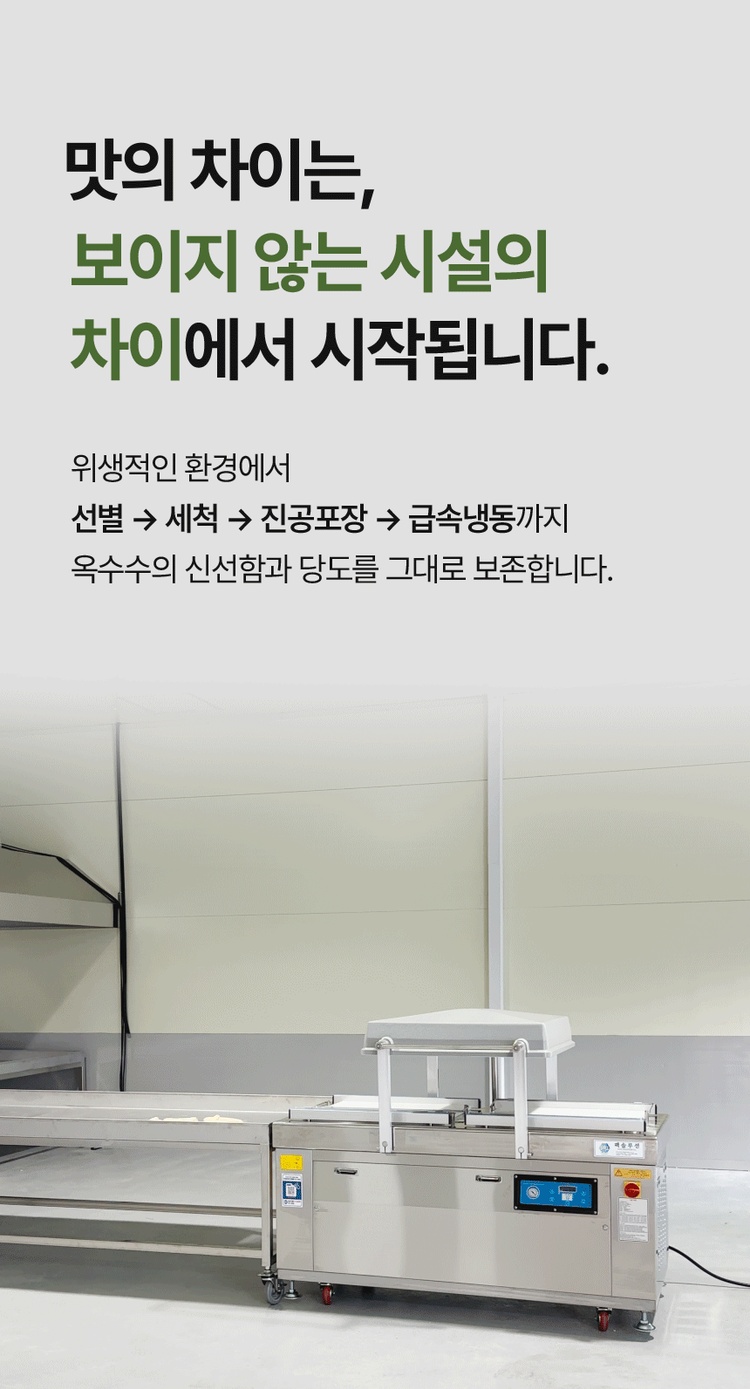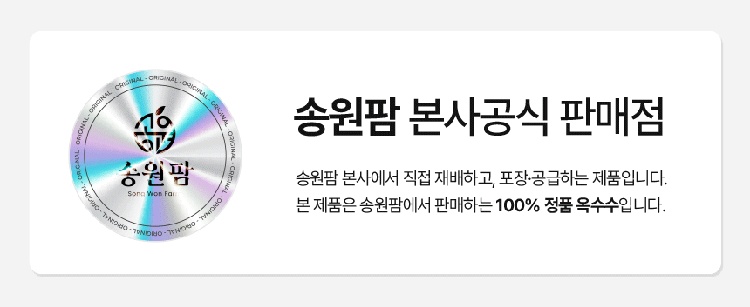 설탕, 소금을 무첨가한 강원도 영월 미백찰옥수수 수확직후 스팀, 진공, 급냉으로 본연의 맛을 유지 10개입 총 2kg이상 중량, 잔류농약 463종 항목 불검출 시험성적서 보유