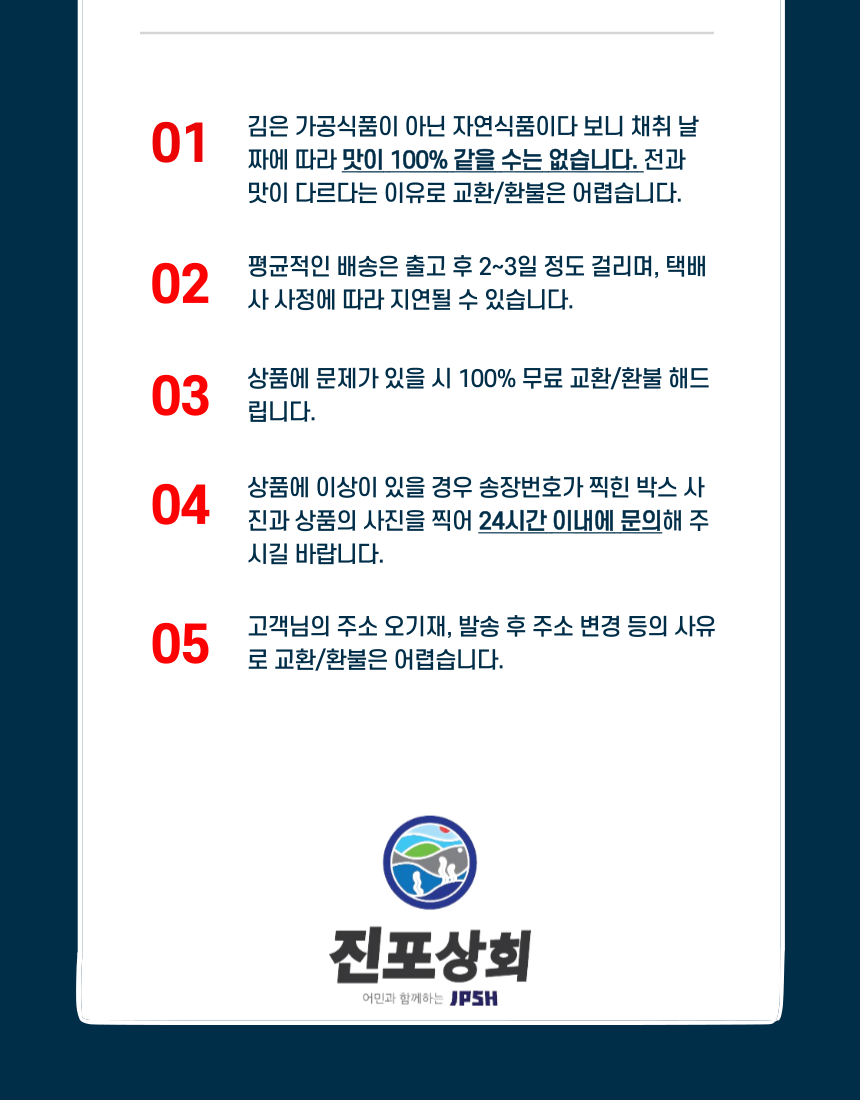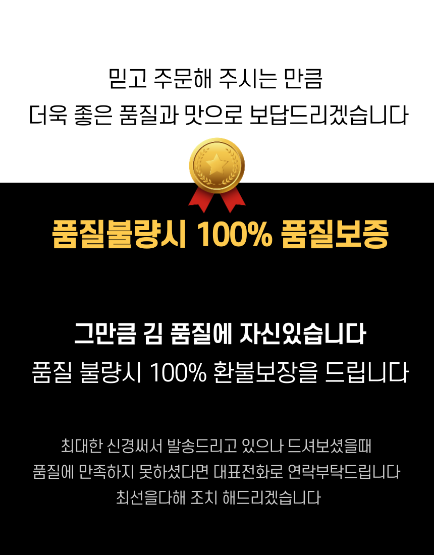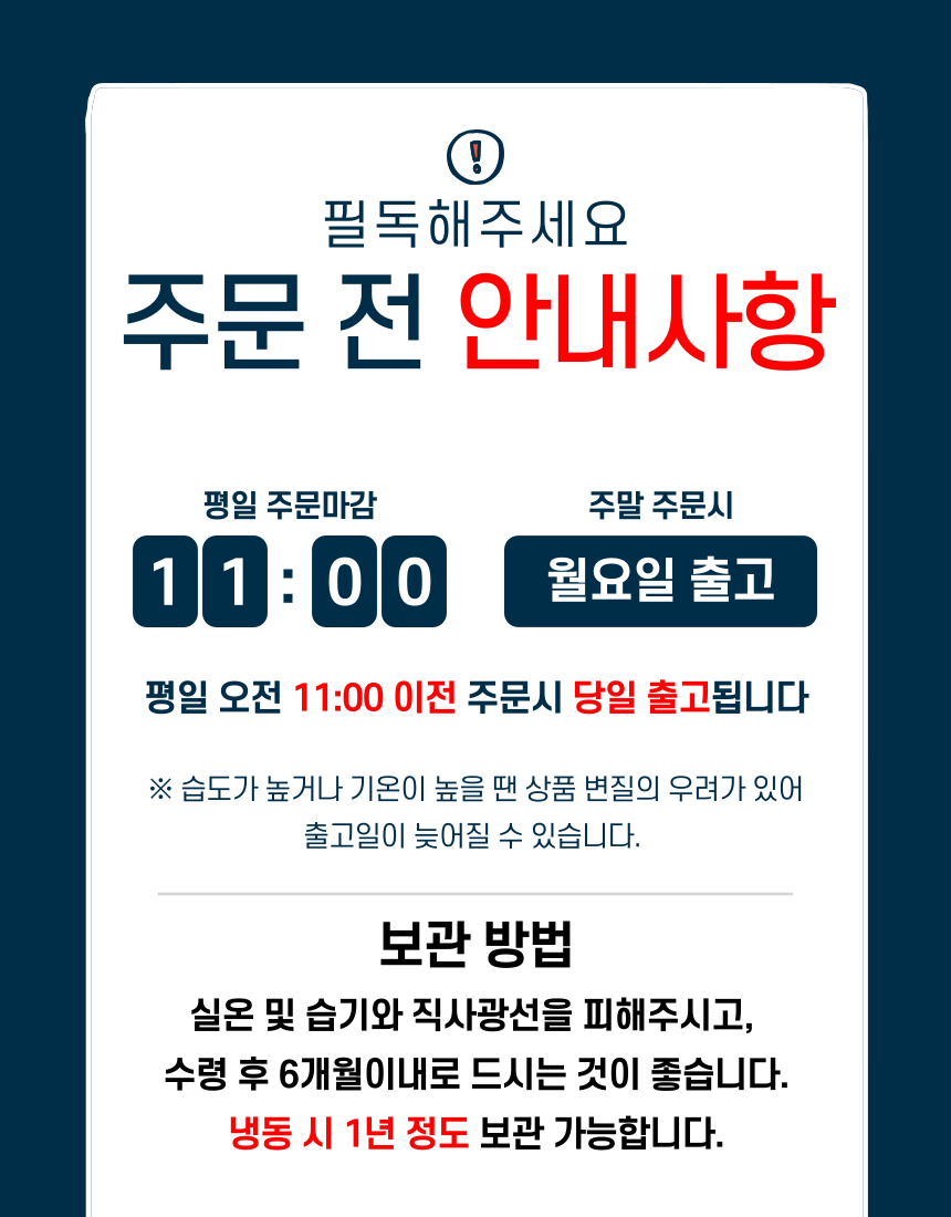 • 수령 7일 이후 전화문의 또는 사이트 신청 없이 반품한 경우 고객님께 다시 반송됨을 양해바라며, 환불/교환은 불가합니다.