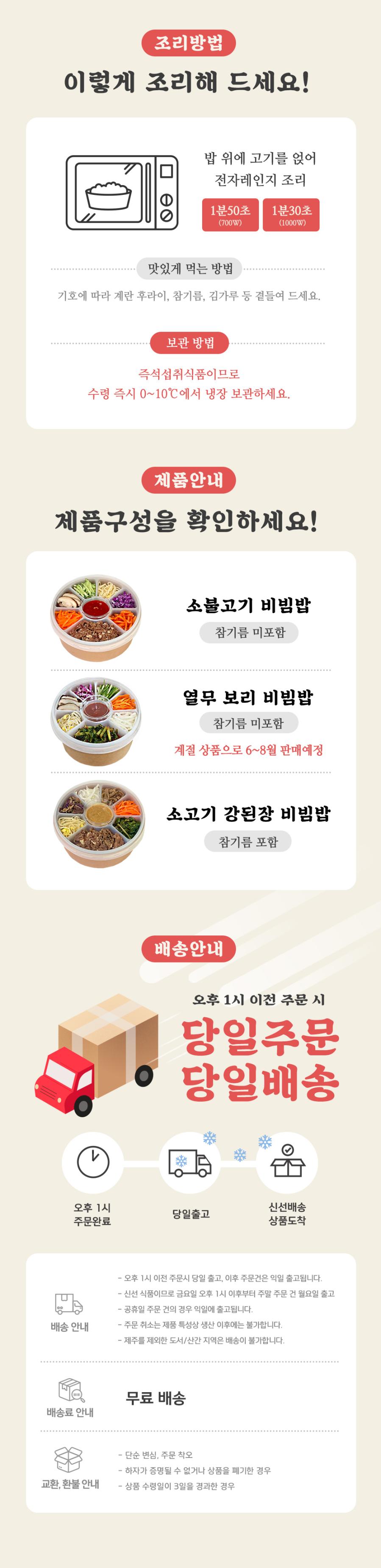 상품구성 소불고기 비빔밥, 제육볶음 비빔밥