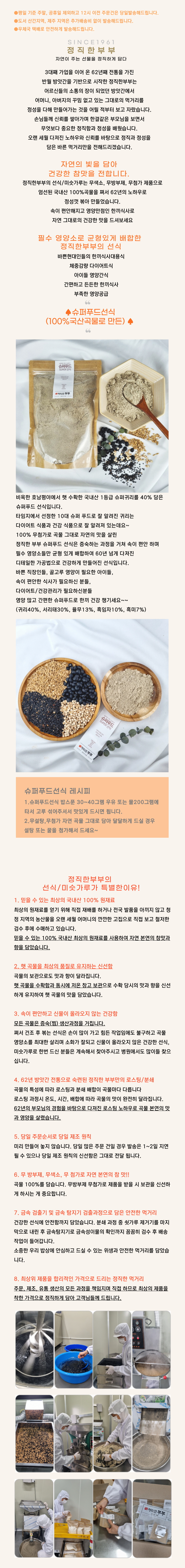 귀리(국내산40%), 서리태(국내산30%), 율무(국내산13%), 흑임자(국내산10%), 흑미(국내산7%)